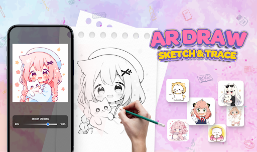 AR Drawing: Sketch and Trace kommt auch mit einer innovativen Funktion - der Möglichkeit, Bilder zu verfolgen. Laden Sie einfach ein beliebiges Bild in die App hoch und verwenden Sie es als Vorlage für Ihre Zeichnungen. Diese Funktion ist ein großartiges Werkzeug, um Ihre Fähigkeiten zu erweitern und verschiedene Stile auszuprobieren, während Sie Ihre Lieblingsbilder nachzeichnen.