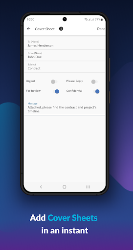 FAX.PLUS ist einfach zu bedienen und hat viele großartige Funktionen, um Ihren Faxprozess einfach und effektiv zu gestalten. Obwohl die App einfach zu bedienen ist, bietet sie dennoch viele leistungsstarke Funktionen. Sie können Ihre Dokumente im PDF- oder JPG-Format senden und sogar Ihre Signatur direkt auf Ihrem Telefon hinzufügen.